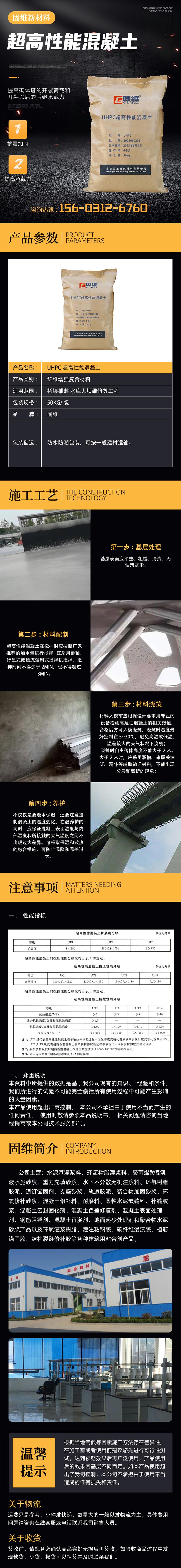 UHPC超高性能混凝土作为一种新型的水泥基复合材料,被称为不开裂的混凝土,它一般采用高强硅酸盐水泥、硅灰、石英粉、细硅砂、减水剂、有机纤维等多种高强度韧性材料经过特殊工艺配置而成的高性能纤维增强混凝土。